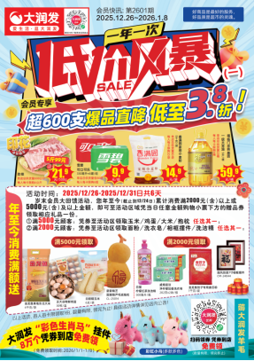 鲁网12月31日讯元旦的脚步日益临近,大润发一年一度的“低价风暴”年节大促火热开启。本次活动横跨元旦假期,以“低价风暴爆品直降热潮”与“会员专属回馈”双线发力,覆盖生鲜、零食、粮油、家居等全品类商品2025年配资网最新消息公布,为消费者打造一场兼具满满年味与超高性价比的节前采购盛宴。